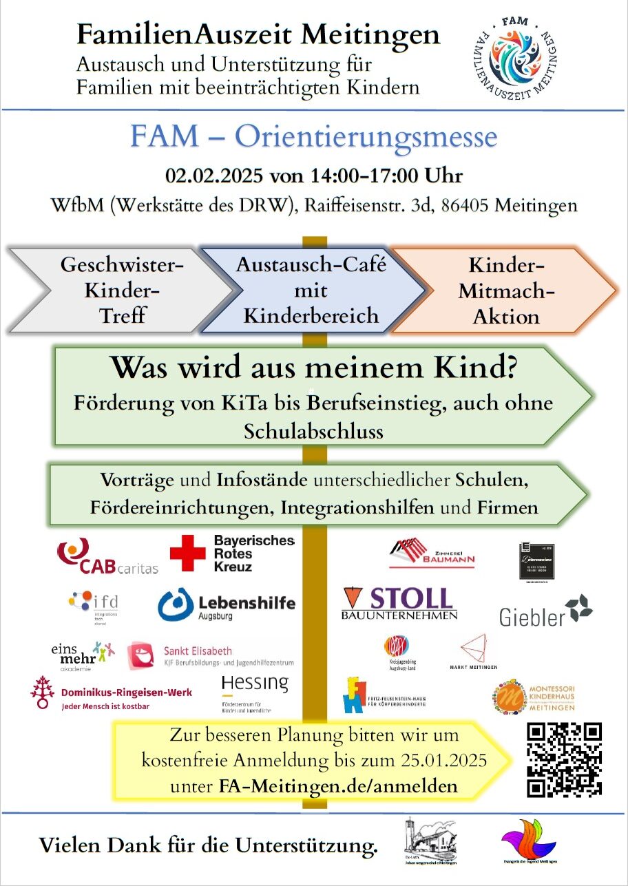 Einer der Gedanke, der leicht zur Sorge werden kann, ist der Auslöser unserer FAM-Orientierungsmesse am 02.02.2025 von 14 bis 17 Uhr in den DRW Werkstätte in Meitingen: