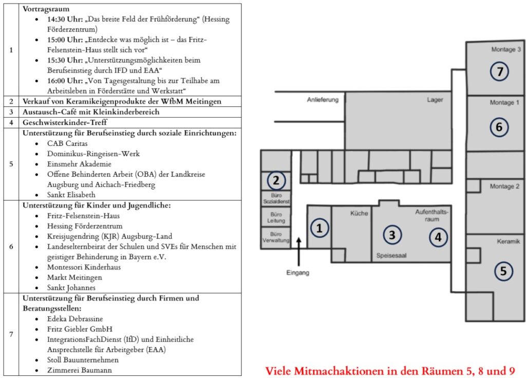 - 16:00 Uhr: „Von Tagesgestaltung bis zur Teilhabe am Arbeitsleben in Förderstätte und Werkstatt“ (Dominikus-Ringeisen-Werk)